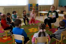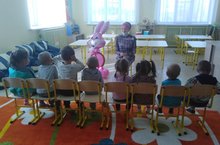 В младшую группу сегодня пришёл гость – Заяц. Дети рассказали ему, как в садике красиво и весело, много интересных игрушек. Также дети предложили Зайцу вместе с ними послушать сказку «Теремок». Дети были рады провести время с гостем, все дружно его проводили. А заяц обещал, что еще раз придёт в наш детский сад.