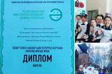 Республикакүләм МинТатарчаСөйләшәм бәйгесендә безнең мәктәп командасы бик актив катнашкан иде... Шушы көннәрдә бәйгенең Татарстан Респубикасы премьер-министры урынбасары, мәгариф һәм фән министры Р.Т.Борһанов имзалаган дипломы да килеп җитте.