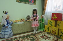В татарской национальной культуре следует выделить наиболее доступные детям по содержанию, форме воплощения, эмоциональной насыщенности компоненты: это устное народное творчество, музыкальное народное творчество, народные игры, праздники, декоративно-прикладное искусство, традиции и обычаи. В нашем детском саду приобщение детей к культуре татарского народа строится на основе бесед, занятий, игровой деятельности, во время которых дети знакомятся с устным народным творчеством (фольклором), играми, традициями и обычаями татар. В групповых комнатах в доступном для детей месте оформлен уголок "Туган җирем Татарстан", где находятся книги татарских писателей, их портреты, иллюстрации к сказкам, куклы в национальных костюмах, дидактические игры. В играх используем расписную татарским орнаментом посуду: тарелку, чашку, пиалу, кухонные доски. Когда у детей сформировались некоторое представления о татарских национальных орнаментах, провели занятие по аппликации, украсили тюбетейку национальным узором. Так, через беседы, занятия, чтение книг, рассматривание иллюстраций, игры дети знакомятся с богатством и разнообразием татарской культуры. Интерес ребенка к национальной культуре – это одно из условий формирования его личности.