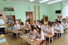 Наши воспитатели по обучению татарскому языку приняли участие в вечере “Ак күңелгә-Ак теләкләр” в районной библиотеке. Там состоялась встреча с ветераном труда, отличником труда РСФСР Фатхуллиной Раей Ахуновной . Она поделилась своим жизненным путем, деятельностью в сфере образования. Вечер сопровождался художественным словом, красивыми песнями. Вечер прошел в теплой душевной атмосфере.