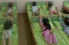 Начинаем проводить ее с проснувшимися детьми, остальные присоединяются по мере пробуждения. Включаем такие элементы, как потягивание, поочередное и одновременное поднимание и опускание рук и ног, элементы самомассажа, пальчиковой гимнастики, гимнастики для глаз и т.п