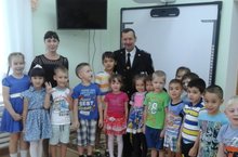 В нашем детском саду ведется большая работа по формированию у детей основ безопасного поведения на улице. Сегодня в гостях у средней группы №6 побывал старший лейтенант полиции. Он объяснил и показал правила передвижения пешеходов по тротуару. Выйдя к проезжей части дороги, объяснил правила перехода через улицу, правила поведения детей на дороге. Старший лейтенант полиции рассказал ребятам о необходимости носить на верхней одежде светоотражающие элементы. Дети не только внимательно слушали его, но и задавали свои вопросы, на которые наш гость отвечал с удовольствием. Такие визиты детям очень интересны, так как они в увлекательной форме закрепляют правила дорожного движения.