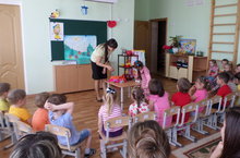 Потому что он хороший!"Закрепить знания детей о произведениях, написанных А. Л. Барто, научить читать их выразительно, расширять звуковую культуру речи, продолжать работу над интонационной выразительностью речи детей, развивать устную речь детей, память, внимание, мышление, развивать эмоциональность детей, развивать умение имитировать движения персонажей, развивать двигательную активность, способствовать эстетическому развитию через народные игры, воспитывать умение сопереживать героям стихотворения было посвящено открытое занятие во 2 младшей группе № 1. Дети вспомнили стихи А. Барто «Барабан», «Мишка» , «Бычок», «Зайка» , «Козлёнок, «Лошадка» ,«Грузовик»,«Мячик» . Далее дети играли в игру «Угадай по описанию» провели эксперимент «Тяжёлые и лёгкие вещи на воде».