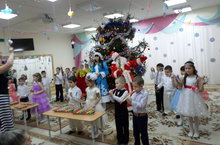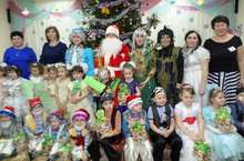 Центр новогоднего празднества -- сверкающая огоньками и игрушками елка. Красота ели обычно настолько захватывает детей, что праздник может начинаться только с нее. Главная цель такого праздника -- показать счастливую жизнь детей, достигнутые ими успехи в развитии.