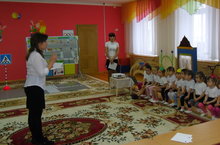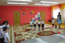 Дәрестә балалар транспорт төрләрен белүләрен ныгыттылар,юлда куркынычсыз йөрү кагыйдәләрен,юл билгеләрен өйрәтүне дәвам иттеләр.Урам аркылы бары тик билгеләнгән урыннардан,олы кешенең кулына тотынып,светофорның яшел уты янгач кына чыгарга кирәклеген кабат искә тешерделәр.