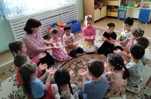 “Туган телем сагында” акциясе кысаларында 22-26 нчы гыйнвар көннәре«Балачак-җырлап-биеп үсәр чак» атналыгы итеп билгеләнде. Атналыкның беренче көнендә балалар безнең күпмилләтле халкыбызның гореф - гадәтләре һәм мәдәнияте турында видео-презентация карадылар, әлеге тема буенча фикер алыштылар, сорауларга җавап бирделәр, республикабыз тарихы, мәдәнияте, гореф-гадәтләре, шулай ук хәзерге вакытта Татарстанның ничек үсүе турында белемнәрен ныгыттылар.