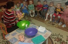 Культурно-гигиенические навыки – важная составная часть культуры поведения. Необходимость опрятности, содержания в чистоте лица, рук, тела, одежды, обуви продиктованная не только требованиями гигиены, но и нормами человеческих отношений.Для ребёнка, приученного к личной гигиене с раннего возраста, гигиенические процедуры – потребность, привычка. Обучение гигиеническим навыкам начинается со знакомства с предметами личной гигиены: полотенце для лица и рук, полотенце для тела, полотенце для ног, банная простынка, небольшая расчёска с тупыми зубчиками, стаканчик для полоскания рта, зубная щётка, носовые платки, щёточка для мытья ногтей, мочалка для тела. Во второй группе раннего возраста №8 провели беседу «Наша гигиена». Детки познакомились с правилами личной гигиены.