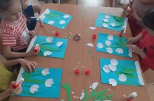 Первые цветы весны – подснежники. Они распускаются в самом начале этого времени года, когда снег ещё лежит на земле. Крошечные белоснежные цветки можно заметить на лесных лужайках, в горах и на проталинах. Подснежники, как правило, растут большими группами. Сначала цветочки тянутся к солнцу, но со временем бутоны склоняются, и цветоножка причудливо изгибается. По форме они напоминают колокольчики. Сегодня в подготовительной группе №8 мы по аппликации сделали подснежники. Детям очень понравилось вырезать из бумаги листочки, бутоны подснежника. А после того как приклеили это на основу- результат ещё больше порадовал их.