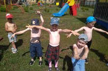 Это самая любимая пора всех детей. Ведь в теплую погоду можно практически целый день проводить на свежем воздухе, вдоволь гулять, веселиться, играть, бегать и прыгать.Главной задачей стоит сохранение и укрепление психического и физического здоровья детей. Важную роль в формировании здорового образа жизни играет закаливание организма.Оздоровительное значение воздушных, солнечных ванн, водных процедур, несомненно.Воздушные процедуры – регулярные прогулки, экскурсии и наблюдения на территории детского сада и т. д.Солнечные ванны – сильнодействующие средство закаливания – общеукрепляющие действие, хорошее самочувствие, сон и т.д.Водные процедуры – самый действенный метод закаливания – контрастные ванночки для ног, обтирание и т. д. Закаленные дети меньше болеют, легче переносят заболевания. Будем здоровы!!!