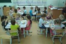 Перед каждым приемом пищи дети умываются, приводят в порядок нос, волосы, одежду. Ребенок должен правильно сидеть за столом: нижняя часть спины должна быть прижата к спинке стула, ступни ног полностью касаться пола, между подачей блюд правую руку следует держать на коленях, а запястье левой руки на столе.