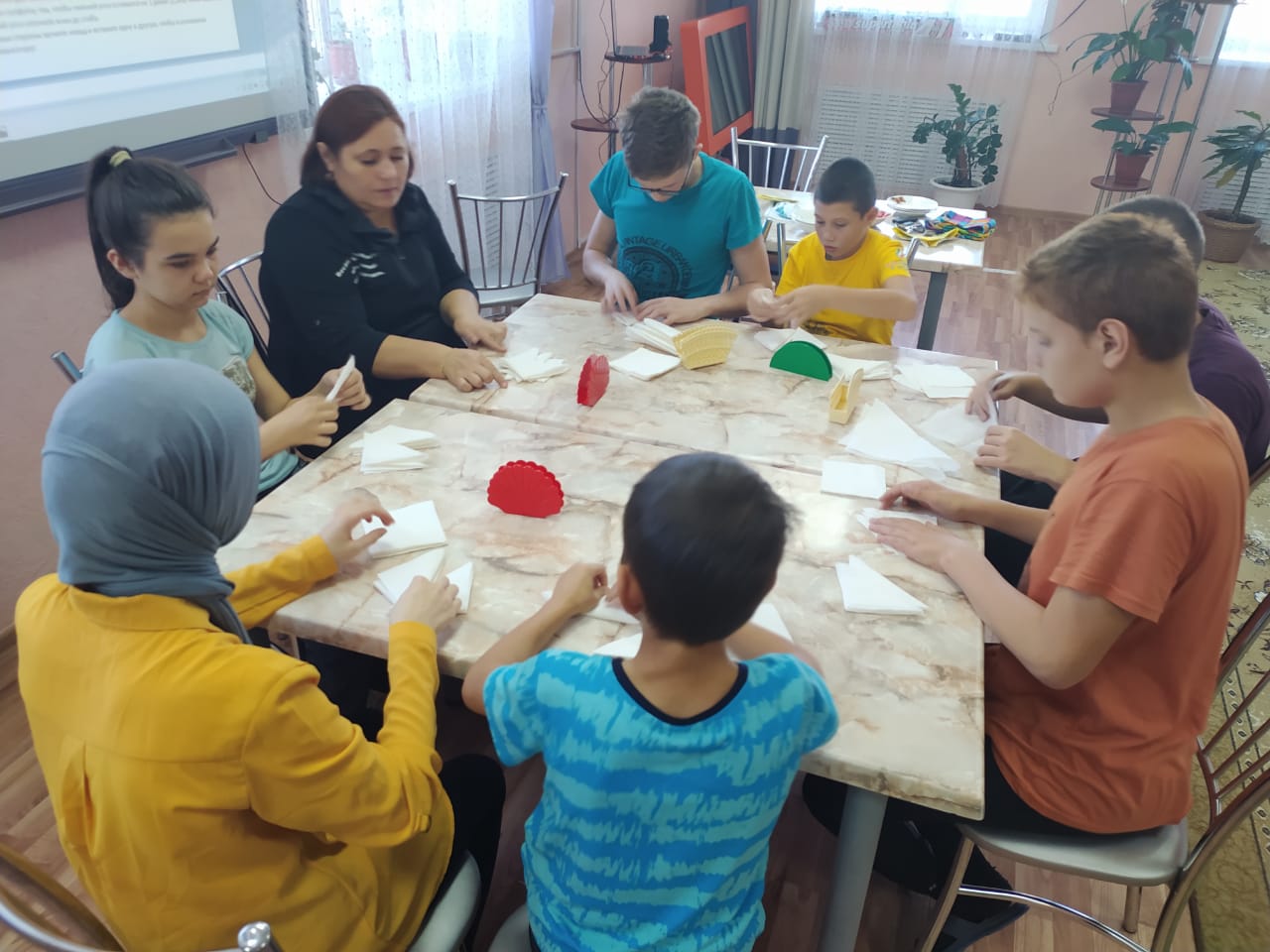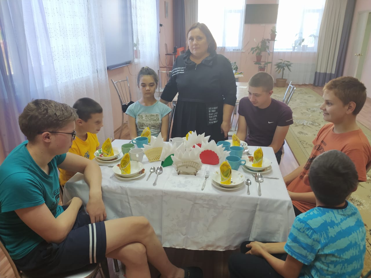 Сегодня инструктор по труду Арского реабилитационного центра для детей и подростков с ограниченными возможностями «Исток надежды» Гульнара Салихзянова провела занятие «Сервировка стола и складывание салфеток».