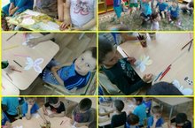 Сегодня ребята отправились в страну насекомых. Путешествие завершили разукрашиванием бумажных бабочек карандашами.