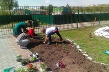 Бакчабызда тирә-юньне матурлау өчен күп көч куела. Бу эштә әти-әниләр дә бик теләп булышалар. Хәзер утыртылган чәчәкләр җәй һәм көз буе безгә күңел күтәренкелеге һәм матурлык биреп утырачак.