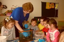 В рамках экологической недели проведена познавательно-исследовательская работа на тему: " Юный исследователь". Наблюдали за таким интересным животным, как улитка. Дети узнали, что когда улитка видит опасность или ее взяли на руки, то она прячется в свой домик, который называется панцирь или раковина. Быстро бегать она не умеет, только ползает. Это все потому, что брюхо улитки соеденена с ногой. Отсюда и называют ее по другому - брюхоногой. Она очень любит ягоды, сочную траву.