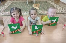 Җиңү көне якынлашкан көннәрдә безнең бакчада тәрбияләнүчеләр дә әзерлек эшләрен башлый. Группаларда әңгәмәләр уздырыла, патриотик шигырьләр, җырлар, биюләр өйрәнәбез. Бүген кечкенәләр төркемендә тәрбияләнүчеләр кисеп ябыштыру шөгылендә бәйрәм открыткасы ясадылар