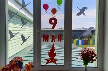 Бөек Җиңү бәйрәме якынлашкан көннәрдә бакчабызда тәрбияләнүчеләр белән берлектә тәрәзәләрне бәйрәмчә итеп бизәдек. Бу бизәлеш белән без ил- җиребездә һәрвакыт тынычлык булуын телибез!