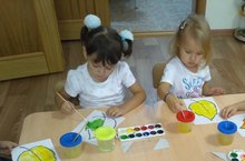 На прогулке с детьми любовались красотой осенних листьев, проводили наблюдение за их полётом. Дети собрали листья различные по форме и окраске и вернувшись в группы, положили их между страницами книг. Таким образом, на следующий день наши листики превратились в гербарий и заняли места в вазах, которые дети сделали самостоятельно в форме больших листиков.