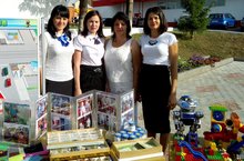 Сегодня в районном доме культуры г. Арск состоялась августовская конференция работников образования "Эффективная образовательная система - муниципальная модель развития". Обсудив вопросы дальнейшего развития системы образования района, мы поставили перед собой задачу: совершенствовать качество дошкольного образования путем внедрения эффективных образовательных технологий в условиях реализации ФГОС дошкольного образования. Подготовленная нами выставка, совместно с другими ДОУ, раскрывала 5 направлений ФГОС: социально-коммуникативное, речевое, художественно-эстетическое, физическое, познавательное.