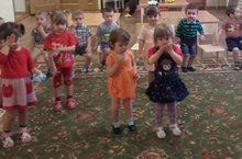 Воспитанникам первой младшей группы очень нравиться исполнять вокальные упражнения, с интересом поют песни.Хотя они делает " Первые шаги" в области пения но старательно,эмоционально поют песни разных композиторов.Также, с помощью песни они познают красоту окружающего мира,знакомятся с животными,с растениями.