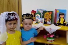 "Халкыбызның милли киемнәре" 07.12.2015 Максат:Балаларда туган телебезне ярату,белү һәм туган телдә сөйләшү теләге тәрбияләү; балаларның тасвирлап сөйләү күнекмәләрен үстерү, милли киемнәрнең исемнәрен, бизәлешләренсөйләмдә дөрес әйтүне активлаштыру; милли сәнгатькә мәхәббәт һәм ихтирам тәрбияләү.