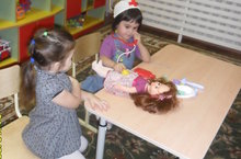 Все родители в свое время сталкиваются с такой неприятной ситуацией, когда при виде людей в белоснежных халатах малыш сначала подозрительно затихает, у него начинают дрожать коленки, постепенно страх перерастает в крик и громкий плач. Как же помочь ребенку, который панически боится врачей и других медицинских работников? Не только взрослые, но и дети доверяют своему первому впечатлению. Это касается и посещения доктора. Поэтому, очень желательно, чтобы маленький пациент познакомился с врачебной средой заранее. Дошкольникам это можно объяснить, например, в виде сюжетно –ролевой игры «Больница».И вот таким образом воспитатели второй младшей группы провели сюжетно –ролевую игру для преодоления страхов у детей . В результате игры дети показали следующие результаты: Получили знания о профессии врача; Дети научились осмотреть больного,слушать трубкой грудку, спинку, измерять температуру градусником. Так же у них сформировалось заботливое отношение к заболевшей кукле, интерес и уважение к профессии врача.