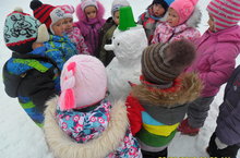 И смеясь, соединяет.Cнизу самый крупный ком,