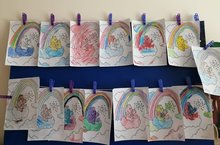 Задачи:1.Закреплять знания детей о расположении цветовом спектере на примере радуги.2. Развивать сенсорные чувства , умение видеть красоту окружающей действительности.3. Воспитывать дружеские взаимоотношения между детьми, эстетическое отношение к природе.