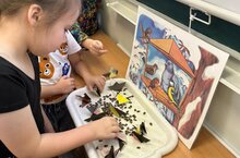 Бакчабызда "Туган телем сагында" акциясен дәвам итеп, бүген шагыйрь Хәкимҗан Халиковның иҗаты белән якынрак таныштык. Балалар белән "Сыбызгы борын", "Шаян бабай","Сәер маэмай","Китап докторы"шигырьләре белән таныштык. Ахырдан сабыйлар шагыйрьнең шигырьләре буенча рәсемнәр ясадылар.