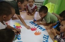 В рамках месячника против терроризма в средней группе №2 была проведена беседа "Мы против терроризма ". В ходе беседы дети узнали что такое терроризм и чему он противостоит. В конце беседы , выпустили стенгазету совместно с детьми.