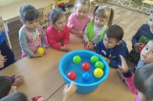 Во 2-ой младшей группе мы должны создать условия для ознакомления детей с цветом, формой, величиной, осязаемыми свойствами предметов, закреплять умение выделять величину и форму как особые свойства предметов; группировать однородные предметы по нескольким сенсорным признакам, совершенствовать навыки установления тождества и различия предметов по их свойствам. Мы учим детей составлять, сравнивать и уравнивать две группы предметов, пользоваться понятиями «Много, один, ни одного», при сравнении предметов соизмерять один предмет с другим по заданному признаку величины (длине, ширине, высоте, величине в целом), знакомим детей с геометрическими фигурами: кругом, квадратом, треугольником, учим ориентироваться относительно своего тела (право, лево, верх, низ). Сегодня мы изучали значение большое и маленькое, сравнивали разные предметы.