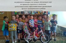 Очень приятно когда труд оценивается. Благодаря участию в районном конкурсе на лучшую обучающую игру по правилам дорожного движения, старшая группа №1 выиграла велосипед. Дети были в восторге.