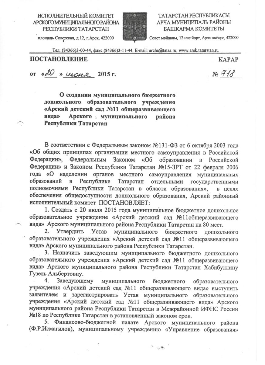 | Короткое название: | МБДОУ "Арский детский сад № 11 общеразвивающего вида" |