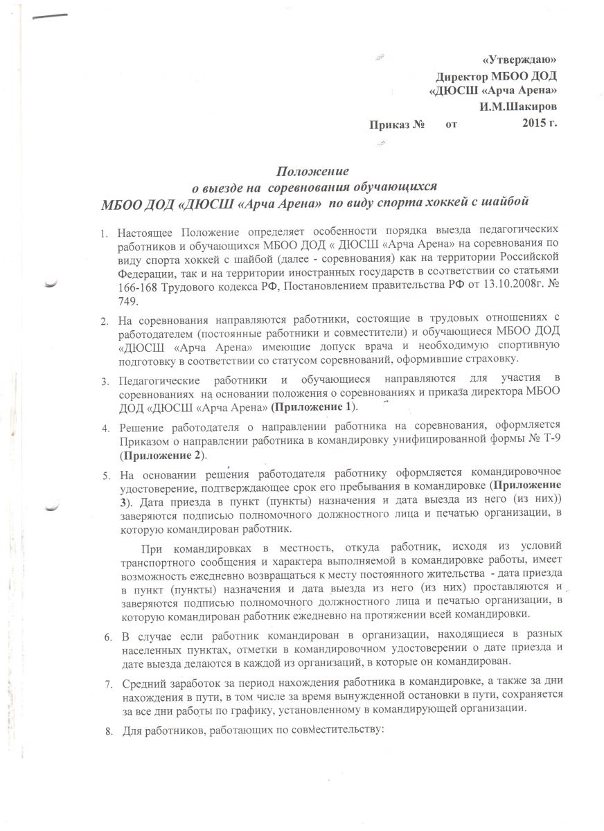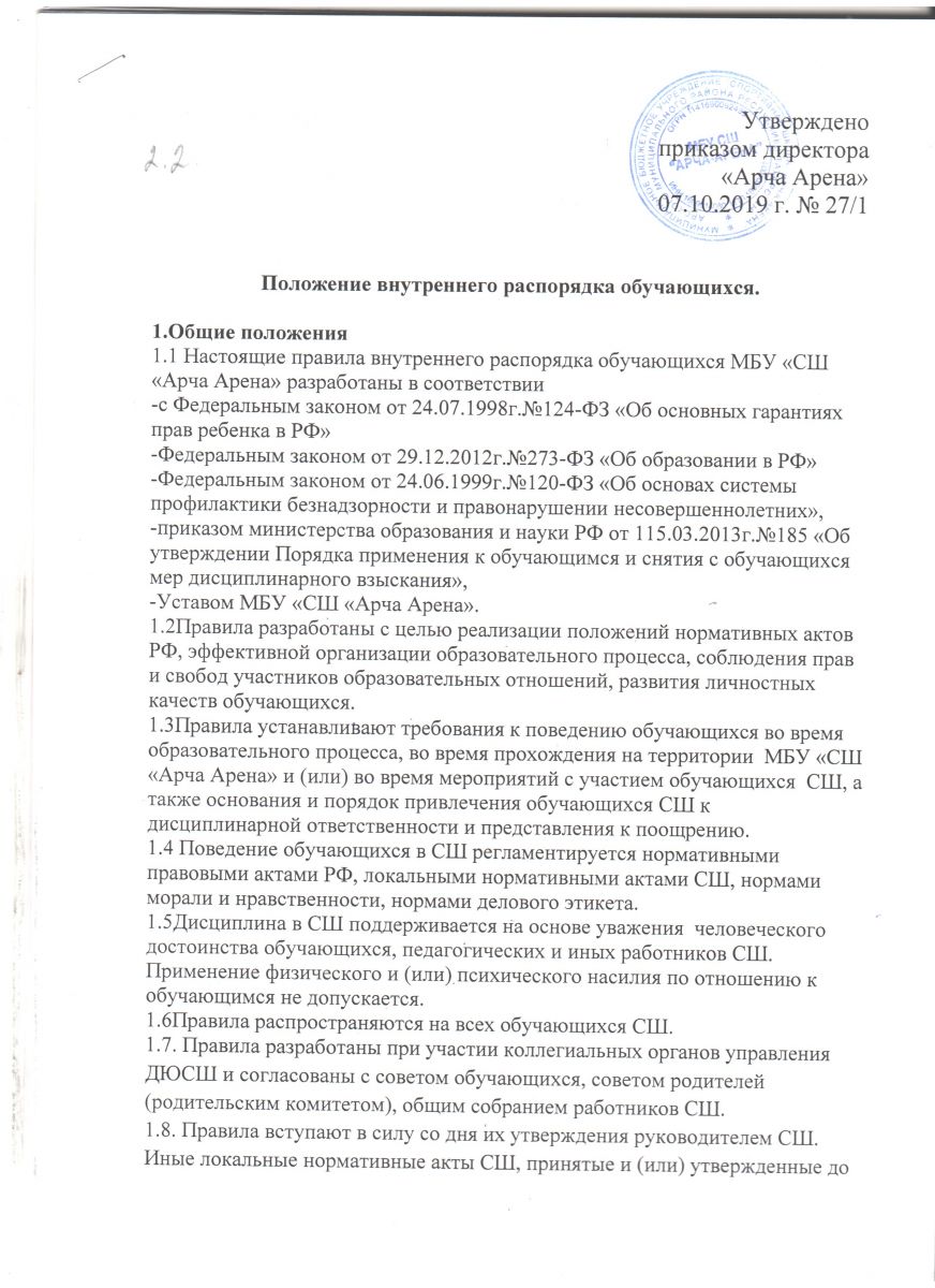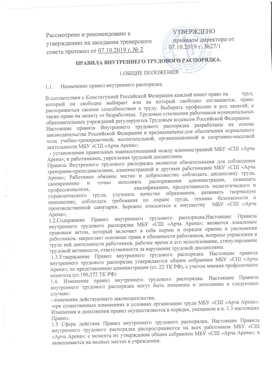 Правила внутреннего трудового распорядка о правилах приема, отчисления спортсмена