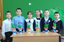 В подарок своим любимым матерям, учащиеся начальных классов сделали букеты своими руками.