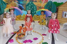 Вот и прошёл первый праздник у наших малышей. Все мы немного волновались и переживали. Готовились, старались, учили репертуар, готовили оформление - и вот, свершилось! Все наши детки, воспитатели большие молодцы! Наш праздник был очень душевным, трогательным и весёлым! В гости к малышам приходили:Осень, Зайчик, Старичок-лесовичок.. Детки с большим интересом наблюдали за представлением, смеялись и радовались появлению персонажей. И сами танцевали и пели песенки для гостей. Показали умения играть с погремушками, танцевать с листочками и статно представить роль "грибочка". В осеннем лесу понравилось путешествовать под шелест разноцветных листьев.