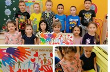 Сегодня в Международный день инвалидов в нашем детском саду в каждой группе прошли мероприятия-беседы, просмотр видеороликов, обсуждение жизненно важных ситуаций, коллективные работы по созданию плакатов, изготовление поделок милосердия.Воспитанники старшей группы "Пчелка" создали социальный плакал, где показали что мир для всех людей один, изготовили ладошки с целью передать свое тепло детям с ограниченными возможностями.