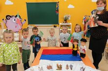В преддверии праздника День народного единства с детьми второй группы раннего развития воспитатели провели беседу-ознакомление,где ребята узнали о том, что наша Родина многонациональная, в нашей стране живут много разных народов. Эти народы отличаются внешне и имеют свои традиции и быт. Побывали на экскурсии в уголке "Семь народов Поволжья". За рабочим столом выяснили что флаг России трехцветный, что означают цвета и закрепили знания раскрашиванием флага.