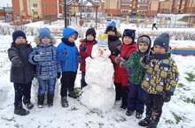 Первый снег для детей - это настоящее раздолье, необыкновенное счастье, восторг и удовольствие! Дети рады наступающей зиме и грядущим зимним забавам: играм в снежки, лепке снеговика. Вся игровая площадка была укрыта красивым белым полотном. Воспитанники подготовительной группы1 «Лучики" с огромной радостью лепили снеговиков, играли в снежки и у всех было одно желание – только бы снег не растаял! Дети получили огромное удовольствие и радость, играя с первым снегом. -