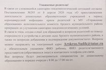 В связи в этим, создан e-mail для обращений и вопросов родителей по поводу очередности и устройства в детские сады Арского муниципального района, а также по вопросам добавления и подтверждения документов/льгот. Вопросы можно направлять на электронный адрес Arskroo.Sadik@tatar.ru с обязательным указанием ФИО ребенка, ФИО родителя/законного представителя (обратившееся лицо) и контактного телефона для связи.