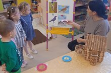 Сегодня в рамках "Недели здоровья" медсестра детского сада провела игру с элементами познавательной беседы в младшей группе 1 *Лучики". Цель:закрепить у детей названия некоторых овощей, фруктов, ягод, продуктов питания; расширять представления детей о том, на сколько полезны многие продукты, и как важно правильно питаться. Во врем игры дети поделились своими знаниями о том,что витамины содержатся не только в овощах и фруктах, но и в других продуктах. Очень полезно кушать кашу с маслом, мед, много витаминов содержится в рыбе, обязательно надо есть мясо. Богаты витаминами и ягоды. Воспитанникам понравилась беседа с медсестрой,дети были открыты,высказывали свое мнение,делились опытом.