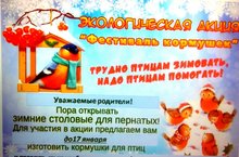 В средней группе "Лучики" объявлена экологическая акция "Фестиваль кормушек" на тему: " Трудно птицам зимовать, надо птицам помогать". Конкурс кормушек - отличная возможность помочь птицам в суровое, холодное и голодное время. Если каждый смастерит, хотя бы одну кормушку и будет регулярно подсыпать в нее корм – это будет хорошее доброе дело и ощутимая помощь птицам! А еще, если повесить кормушку напротив окна, то очень увлекательно наблюдать морозным днем какие птицы прилетают к вам подкрепиться.