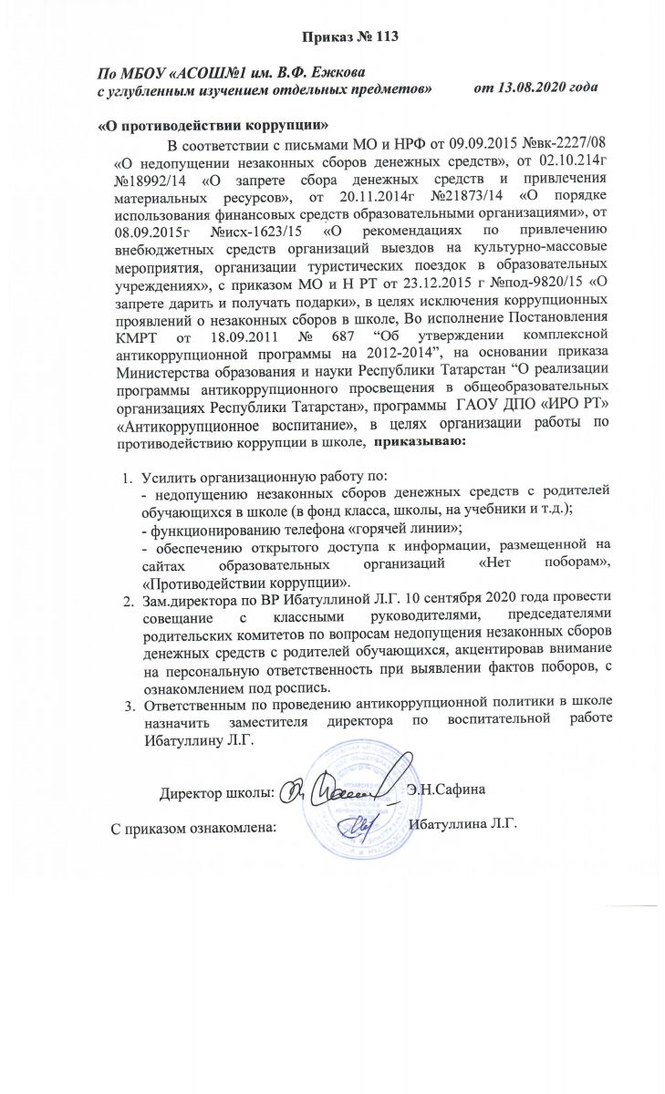 Короткое название: МБОУ "АСОШ №1 им.В.Ф.Ежкова с УИОП"