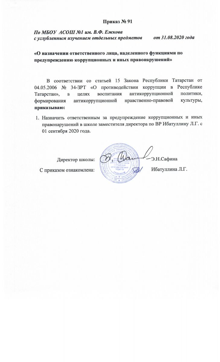 О назначении ответственного лица, наделенного функциями по предупреждению коррупционных и иных правонарушений