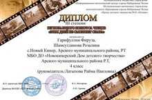 "Тылсымлы крючок" түгәрәгендә йөрүче кызлар республика күләмендә уздырылган "Тукай дөньясына сәяхәт" дип аталган конкурста катнашып 1 урын яуладылар. Аларны һәм җитәкчеләре Латыпова Р.Н.ны зур җиңүләре белән тәбрик итәбез!