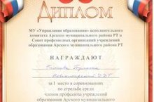 Член профкома Галиев Б.Г. занял 1 место в соревнованиях по стрельбе среди работников учреждений образования Арского муниципального района