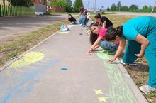 В честь праздника Дня защиты детей был проведен конкурс рисунка на асфальте "Яркие краски лета". Участники конкурса старательно превращали асфальт в произведения искусства. Асфальт был украшен полностью, глаза разбегались от красочных работ, мел был на исходе, а радость переполняла сердца. Все рисунки получились яркими, интересными, а главное - добрыми.