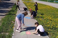 Балалар бүген рәхәтләнеп асфальтта рәсем ясадылар. Ясаган рәсемнәрдә аларның гаиләләре, дуслары, яраткан уеннары, җәй бизәкләре һәм, әлбәттә, тынычлыкны чагылдырган, нур сибүче кояш иде. Балаларның рәсемнәре берсеннән - берсе матур килеп чыкты.