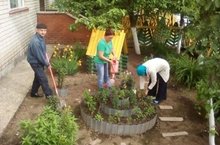 Продолжается работа по благоустройсту территории учреждения.