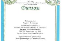 Өстәмә белем бирү педагогы Загидуллина Г.В. җитәкчелегендәге "Мәктәп театры" түгәрәге республика күләмендәге "Театр как театр" конкурсында катнашып 3 урын, Вильданова Г.Ш. җитәкчелегендәге "Сәйлән" театр коллективы 2 урын яуладылар. Котлыйбыз!