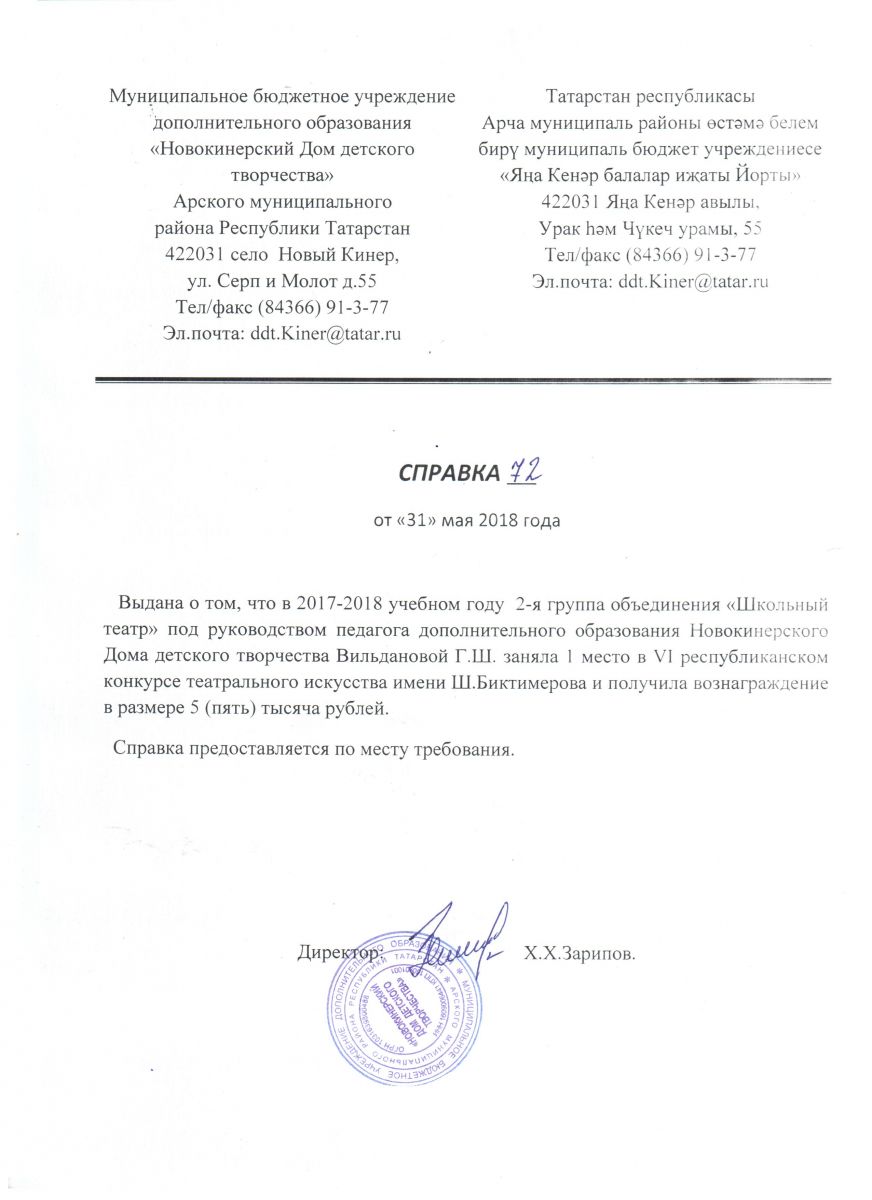 Муниципальное бюджетное учреждение дополнительного образования «Новокинерский Дом детского творчества" Арского муниципального района Республики Татарстан/Татарстан Республикасы Арча районы "Яна Кенәр балалар иҗаты Йорты" өстәмә белем муниципаль бюджет учреждениесе